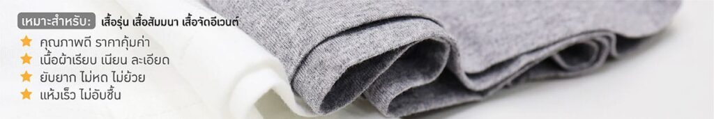 เหมาะสำหรับ: การใช้งานกลางแจ้งที่ต้องเคลื่อนไหวอยู่ตลอด เช่น เสื้อกลุ่ม เสื้อครอบครัว เสื้อทีมสตาฟ เสื้อกีฬาสี เสื้อจัดอีเวนต์ และยังนิยมสกรีนโลโก้แบรนด์ทำเป็นสินค้าหรือของขวัญ