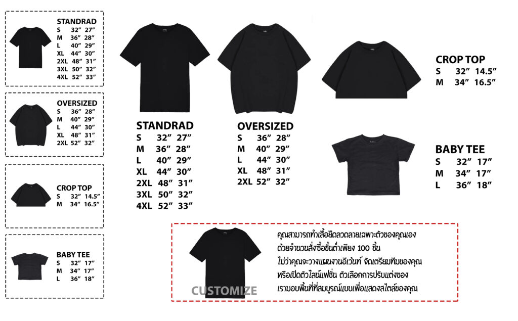 - ขั้นต่ำ : 100 ตัว / แบบ